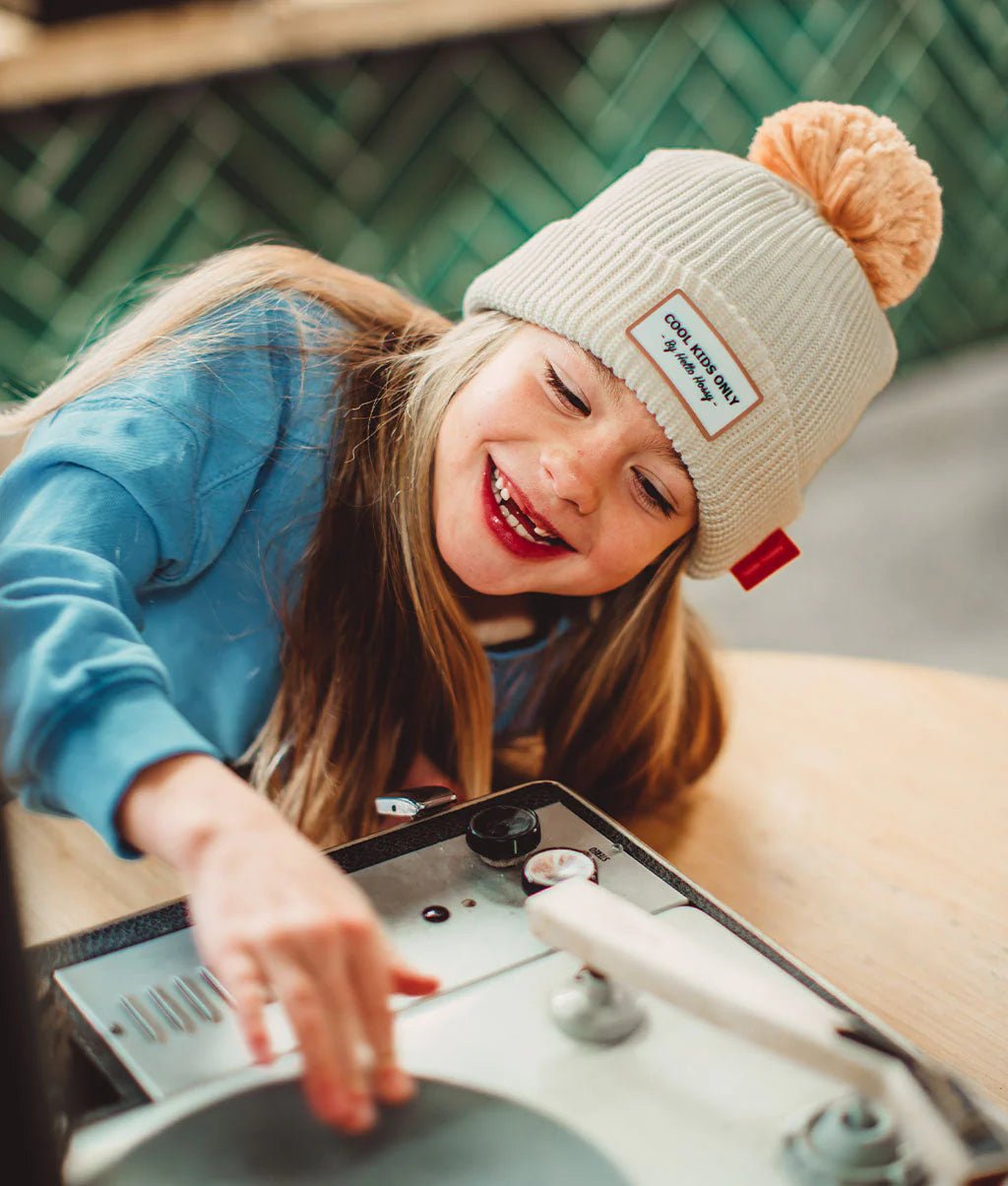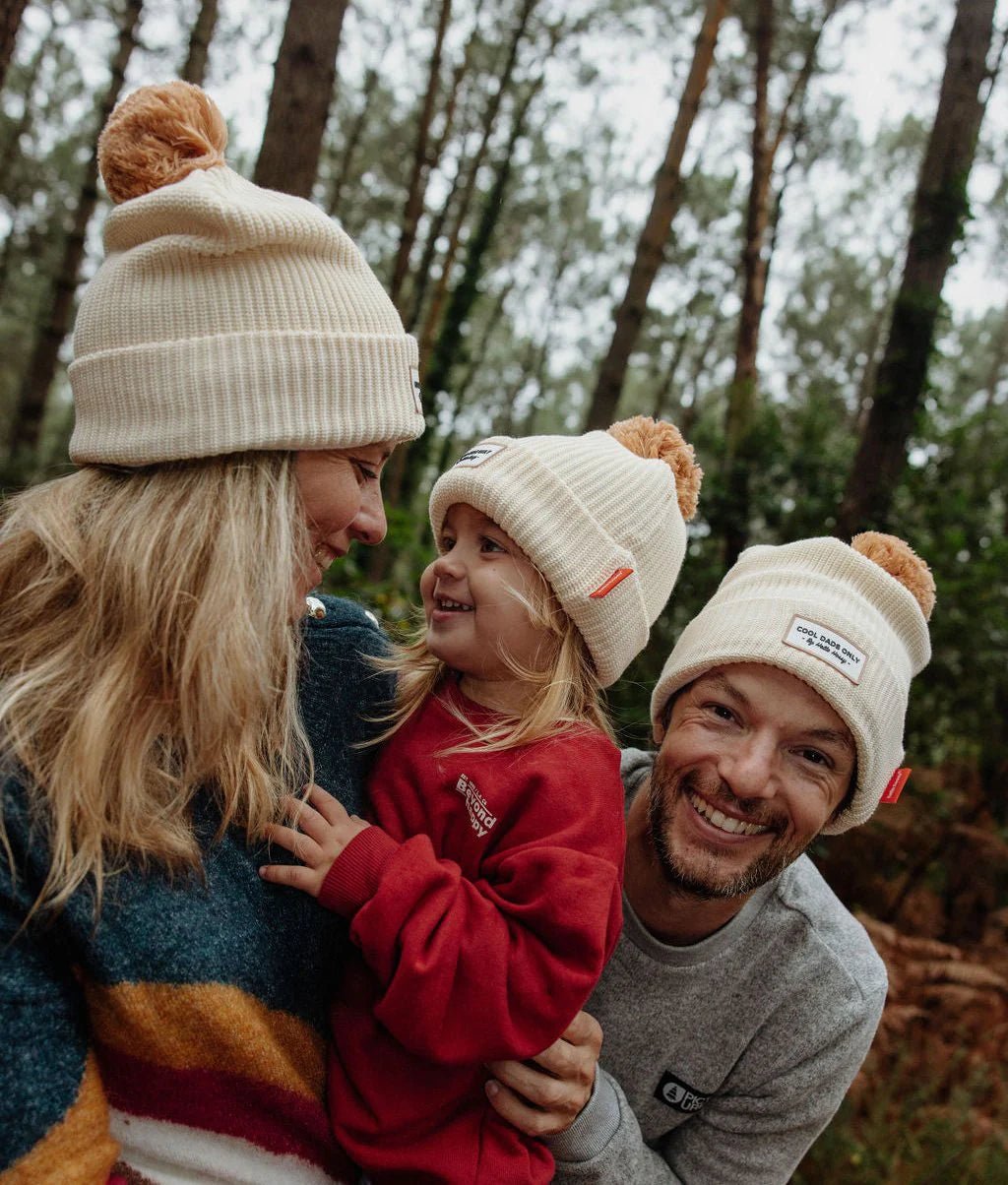 Meet the Block Sandy hat from the French Hello Hossy collection. A top accessory for children and babies aged 9 months and up, available in three sizes and made of organic cotton with a pompom, fleece lining, and Oeko-Tex certified. There's also a version for cool moms, perfect for twinning.