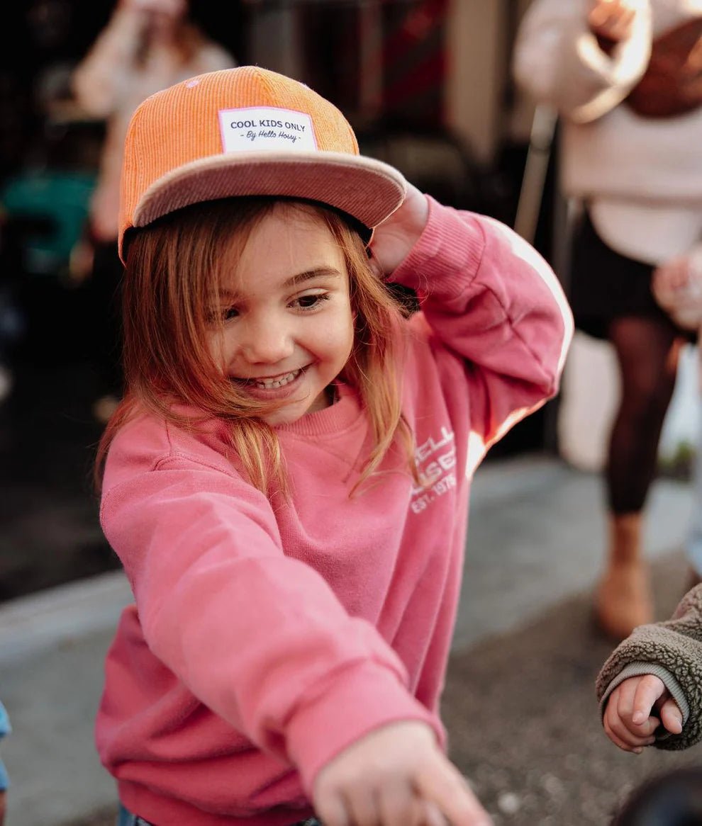 Opt for color, style, and quality with the Curdoroy Sweet Mandarin Children's Cap from the French brand Hello Hossy. This velvet cap with a straight brim for children and babies is perfect for the fall/winter season, available for ages 9 months and up. It's incredibly soft and stylish, and will bring a little cheer and a boost to children's spirits!
