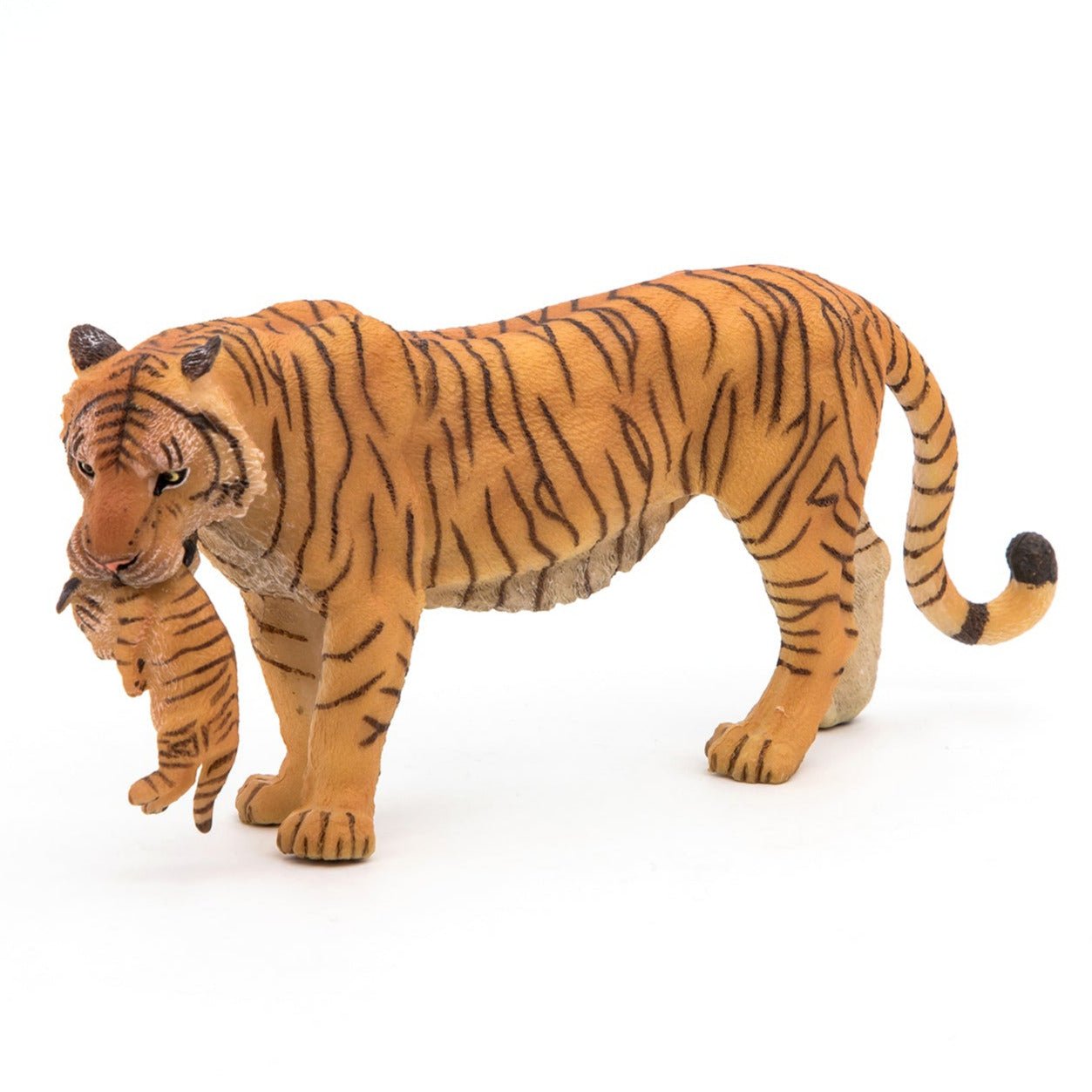 The Tigress with Cub toy figure from Papo in France is a realistic, hand-painted wild animal, perfect for children ages 3 and up. Tiger cubs are born with their eyes closed and weigh only 1 to 1.5 kilograms. They are completely dependent on their mother for the first few weeks of their lives.