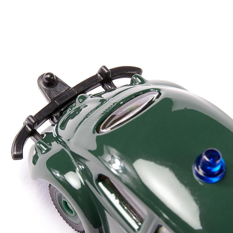 De VW Kever uit de collectie van SIKU speelvoertuigen keert terug in zijn donkergroene politieversie en combineert cultcharme met operationele paraatheid! Als eerste “Volkswagen” werd de Kever een symbool van mobiliteit en groeide wereldwijd uit tot een absoluut cultobject. In het wagenpark van siku is deze evergreen getrouw gereproduceerd in elegant donkergroen met blauwe lichten op het dak.