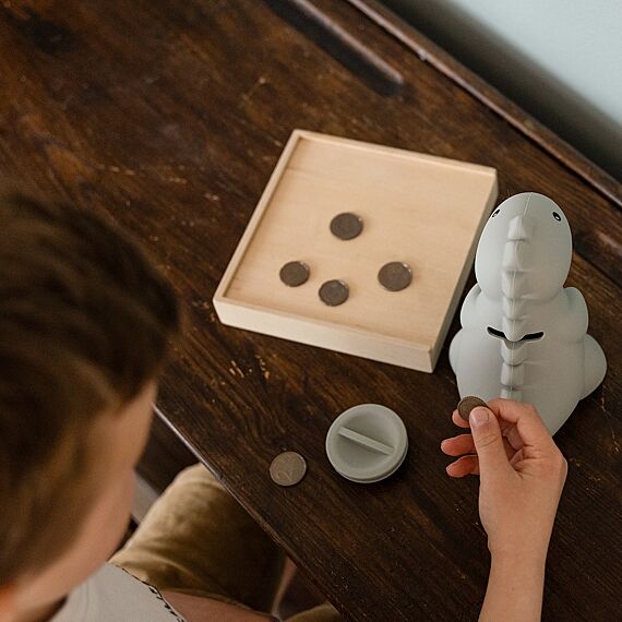 Jeroom Dino SAGE GREEN MONEY BOX LARGE | H 16.5 x 14.9 x 10.8 cm