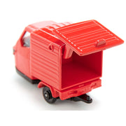 Ciao, bella! Dit italiaans speelvoertuig Piaggo Ape van het Duitse Siku in opvallend stralend rode kleur komt via de Brennerpas direct je hart binnengereden.
