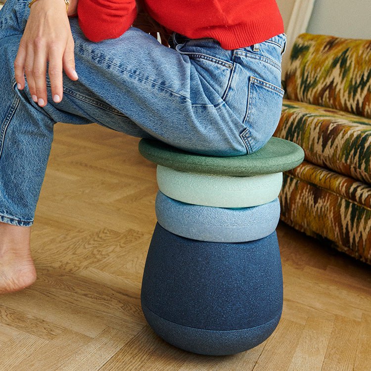 With its curved underside, the Stapelstein base gently rocks in 360° micro-movements, unconsciously strengthening your body. No screws, no batteries: just form, balance, and fun. Made of ultra-light, 100% recyclable EPP, yet strong enough to hold up to 120 kg.