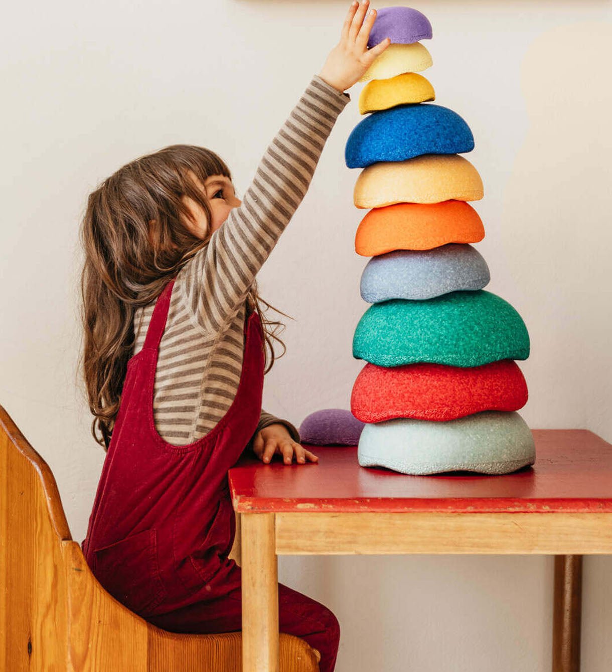 De Stapelstein Original en Inside stenen zijn waterdicht, robuust en gemakkelijk schoon te maken, je mag er dus ook mee buitenspelen. Bovendien moedigen de felle en zachte kleuren vrij spel met het hele lichaam aan. Wat ons betreft: onmisbaar in jouw speelkamer!