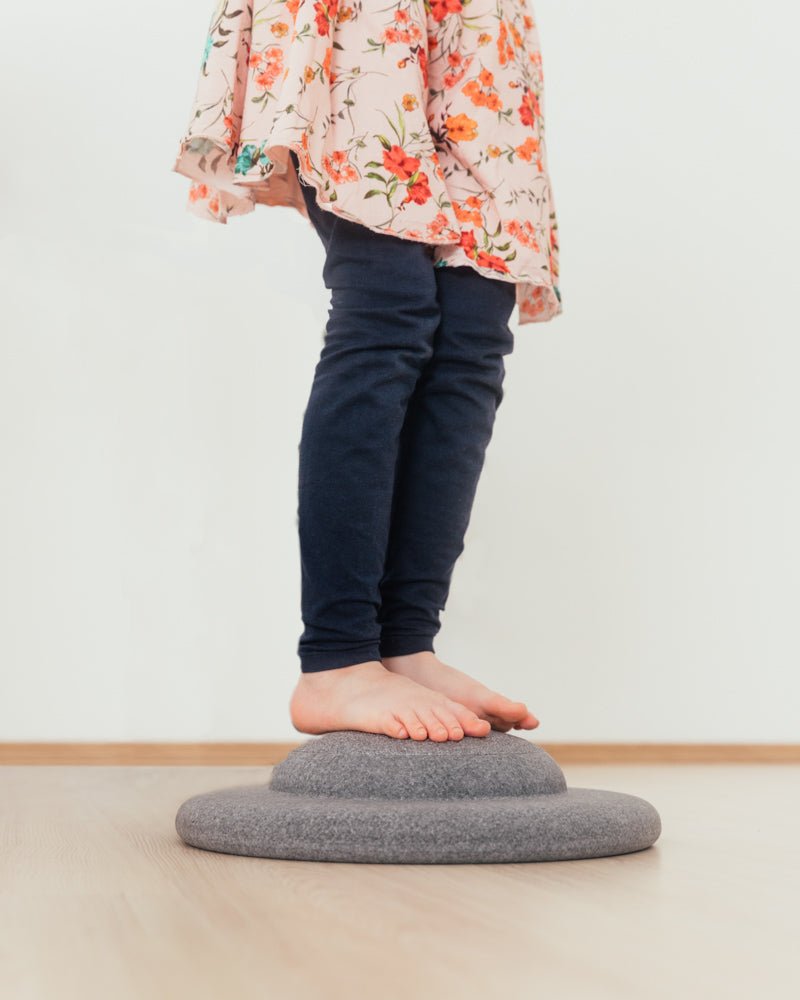 The Stapelstein® Board Light Grey is an original open-ended toy for active balance exercises, obstacle courses, and dynamic sitting for the whole family. You can try to stand on it and find your balance. This original balance board is compatible and easy to combine with the entire Stapelstein collection . It adds an extra level to stacking, and the balance stone also adds extra play value.