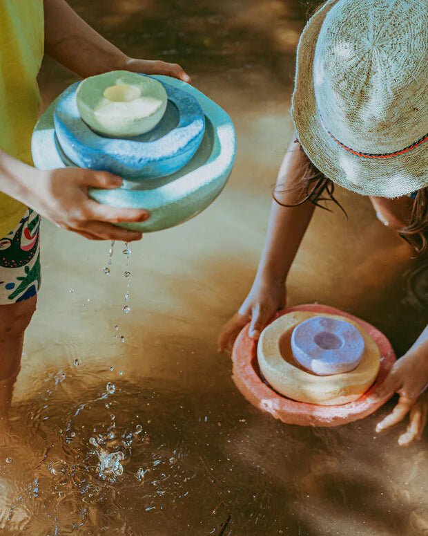 This open-ended toy doesn't come with instructions, as children's imaginations are the guiding principles. Build a tower, take it for a bath, play indoors or outdoors , winter or summer—water, mud, and sand games are also very popular—and best of all, you always have a variety of play options with you because everything fits together neatly, so this set takes up minimal space and is perfect for travel, sleepovers, or outdoor play.