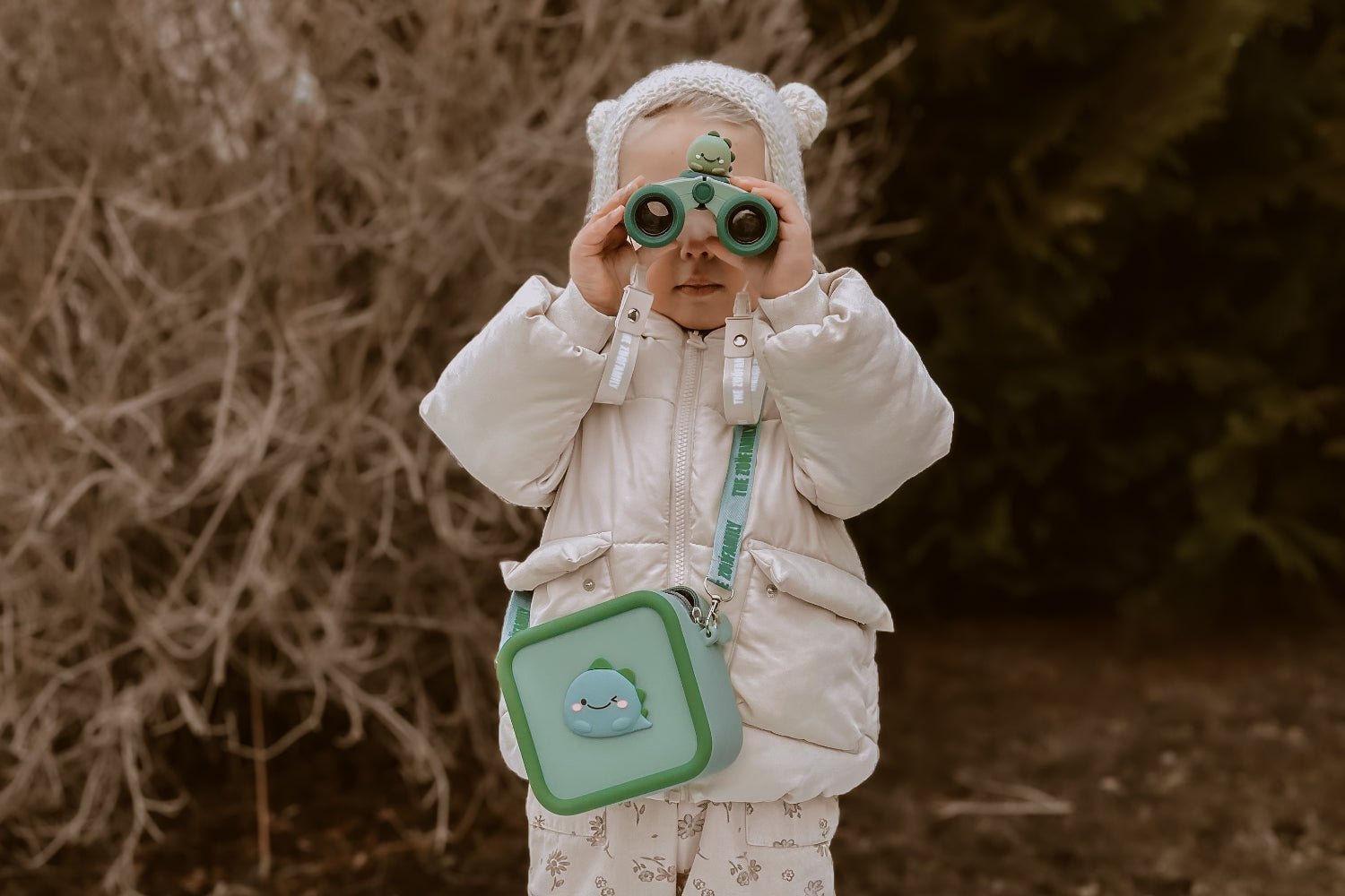 What we love about the design is the combination of imagination and functionality . Behind the playful dinosaur design lies a real pair of binoculars for children with 8x zoom, sized to fit little eyes and featuring adjustable eye relief, so little ones can see comfortably, no matter their age. The soft silicone finish feels great in little hands and makes this active explorer toy extra sturdy, even if it accidentally falls off during an adventure. To complete the look, choose a matching Zoo Bag Dino bag that fits the dino binoculars perfectly.