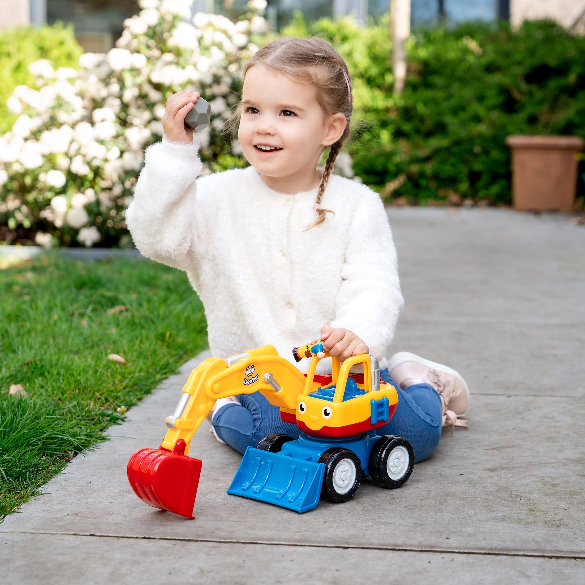 • Set contents: 1 motorized Push & Go excavator, 1 construction friend, 2 rattling boulders