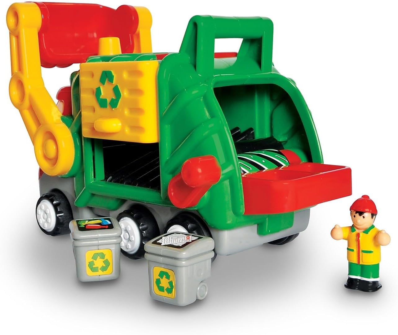 • Removable Play Friend figures and recycling-themed recycling bins.