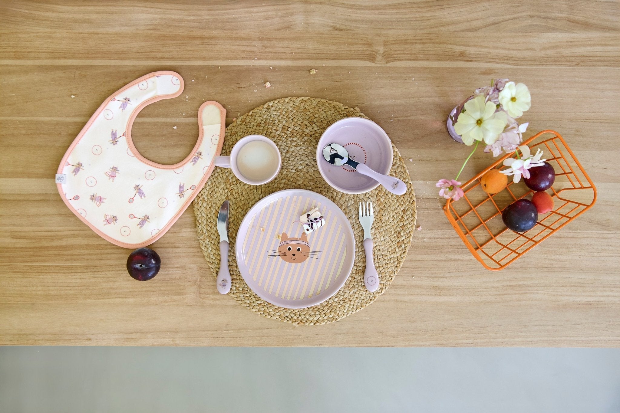 • Een set met beker, kinderbowl en bijpassend bord met rand