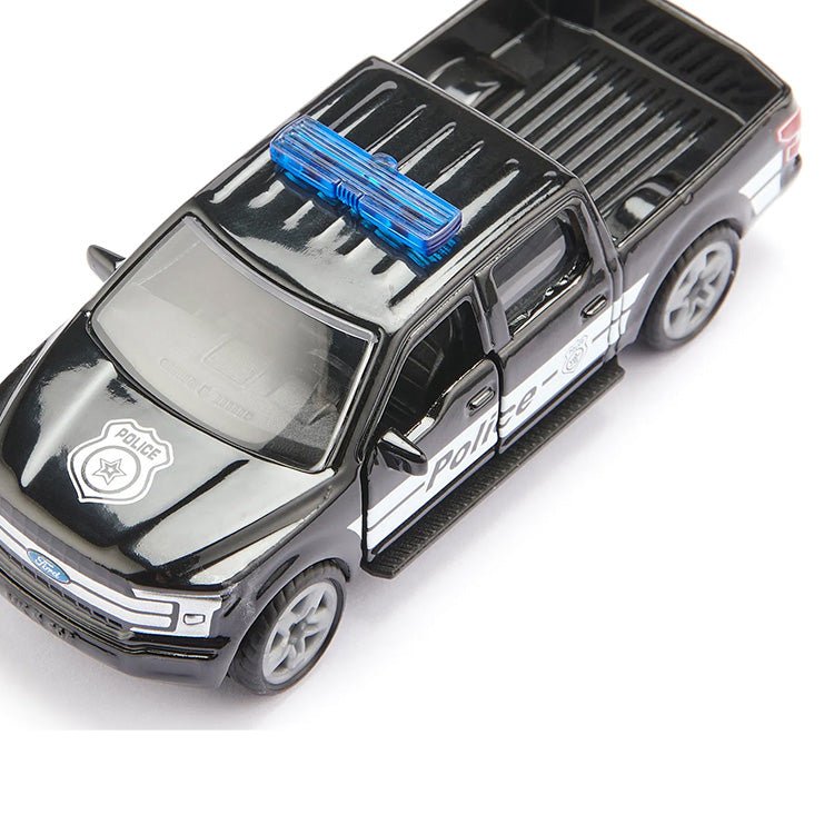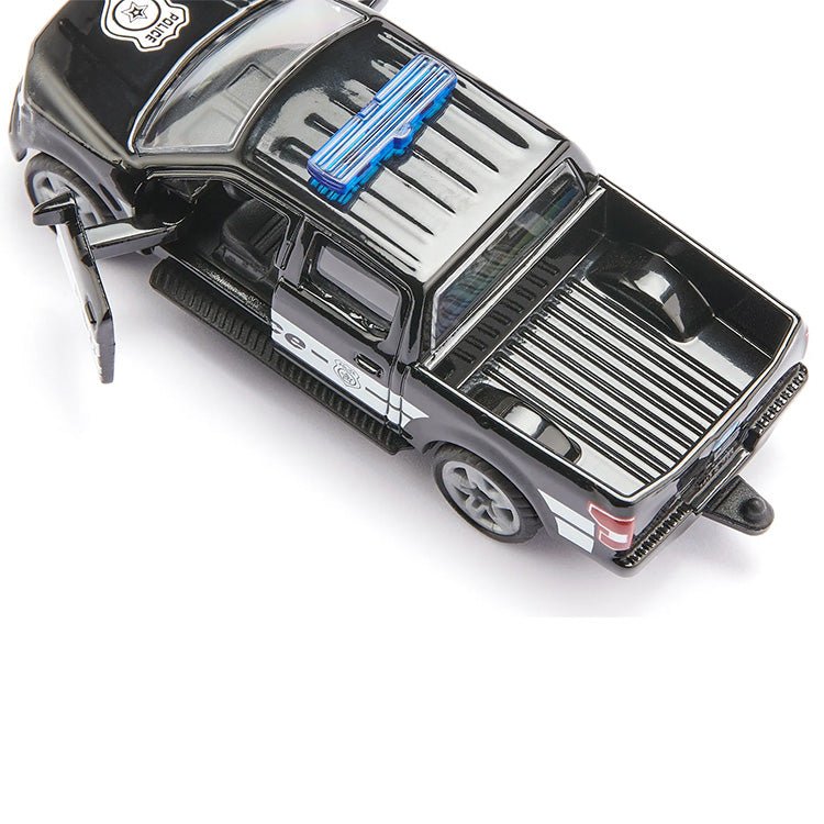 De Ford F-150 US Police van Siku is een metalen politiewagen en de perfecte pick-up voor iedereen die van actie en avontuur houdt! In zijn zwarte lak en blauwe zwaailichten is hij klaar voor elke achtervolging.