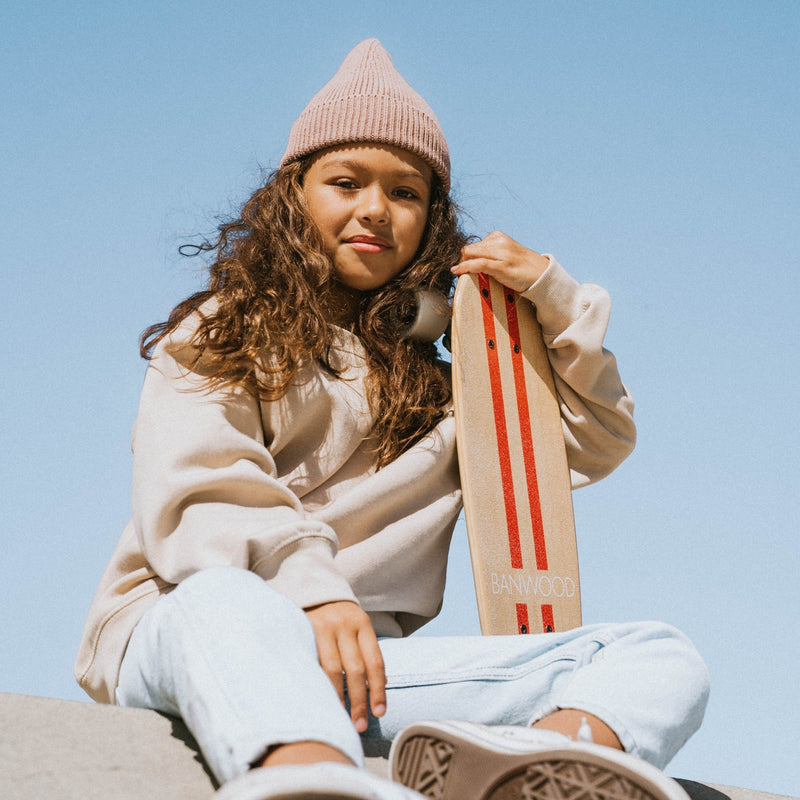 La nouvelle collection de skateboards Banwood combine le design épuré et nostalgique de Banwood à des éléments vintage aux teintes pastel, rappelant la Californie des années 70. Quel look ! Fabriqués en érable naturel du Canada, les skateboards Banwood se déclinent en différentes styles et offrent une conduite facile et stable. Adaptés aux débutants comme aux riders expérimentés, ces skateboards sont parfaits pour les enfants à la recherche de sensations fortes et d'aventures à quatre roues. Une chouette idée cadeau pour les enfants à partir de 3 ans qui adorent se défouler à l'extérieur.