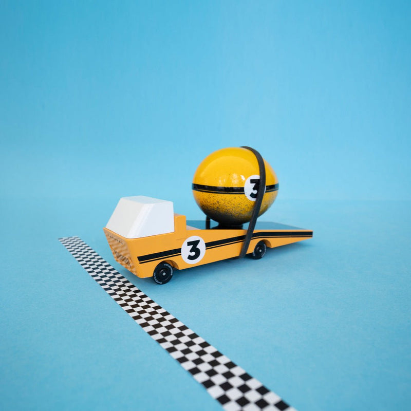 Les véhicules Candylab (voitures, caravanes, pick-ups et food trucks) ne sont pas de simples versions miniatures de vraies voitures ; ils en capturent l'essence avec magie. Chaque véhicule Candylab est fabriqué en bois de hêtre massif provenant de forêts gérées durablement d'Amérique du Nord. Les véhicules sont ensuite peints avec une peinture à l'eau et conviennent aux enfants à partir de 3 ans.