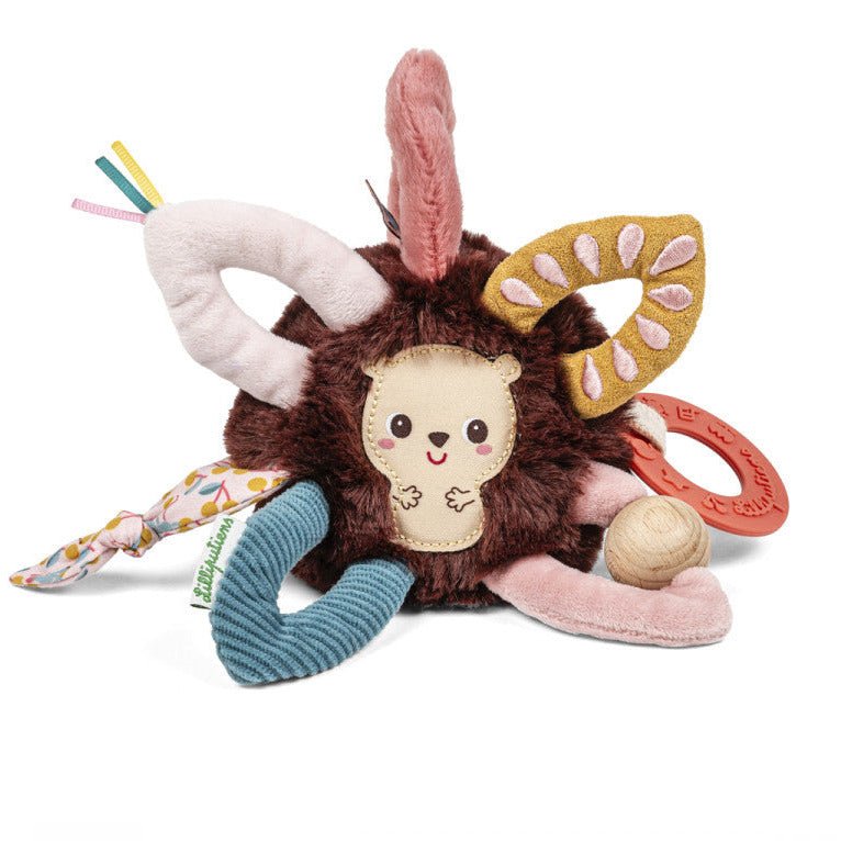 Léon le hérisson fouille dans les feuilles du jardin – curieux, tout doux et toujours prêt à explorer. Ce jouet d'éveil tout doux, les anneaux sensoriels Léon de Lilliputiens, invite les bébés à toucher, écouter et regarder grâce à une variété de couleurs, de matières, de rubans, de formes et de textures. Ce qui nous plaît particulièrement, c'est la façon dont Léon stimule les sens sans les surcharger. Chaque détail a son utilité, chaque matière procure une sensation différente.