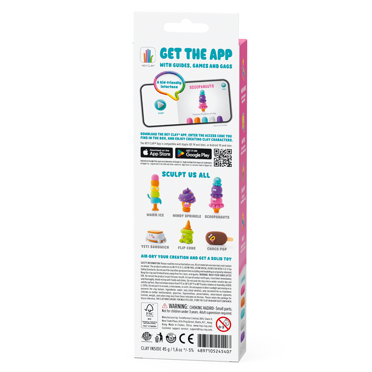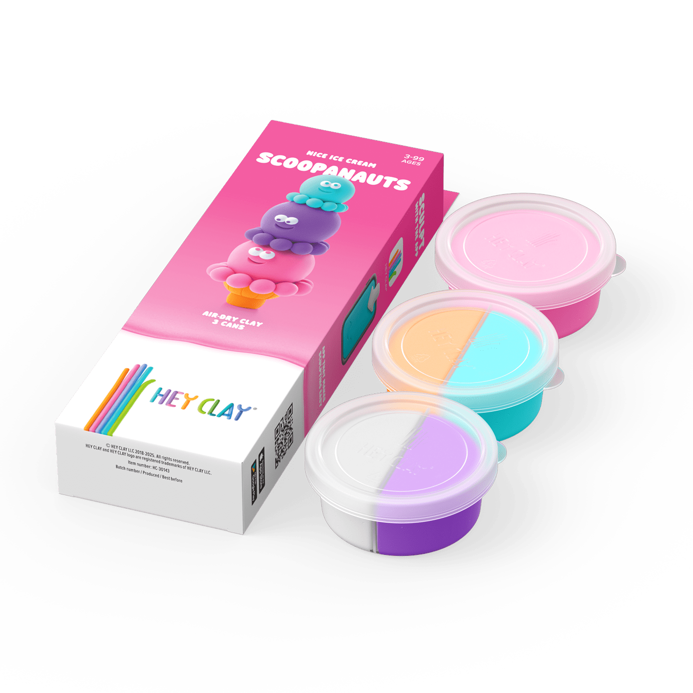 Het plezier van met je handen bezig te zijn, iets te maken en nadien een plekje te geven in je interieur: deze kleiset Ice Cream Scoopanauts van Hey Clay is een klein cadeautje met grote impact. Alles zit in dit doosje om meteen aan de slag te gaan. Met behulp van de interactieve app kan je stap voor stap je eigen ijsje met 3 bollen te boetseren.