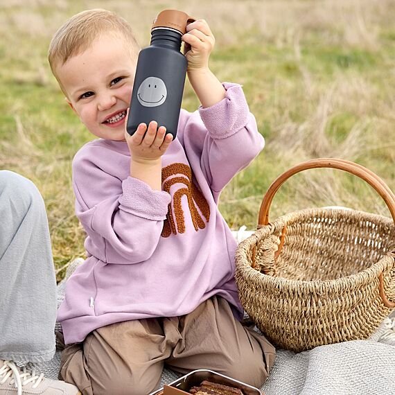 Bottle Stainless Steel Little Gang Smile Navy - Drinkflessen Lässig - In den Olifant