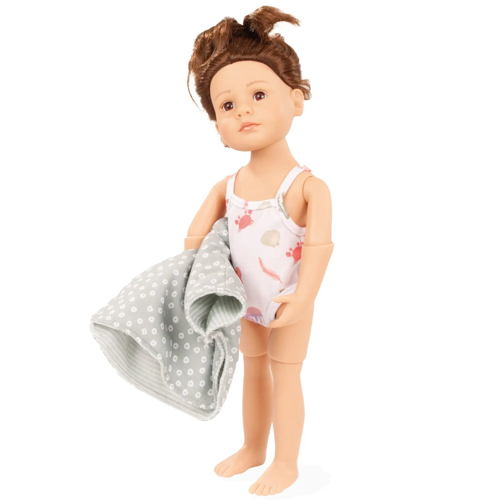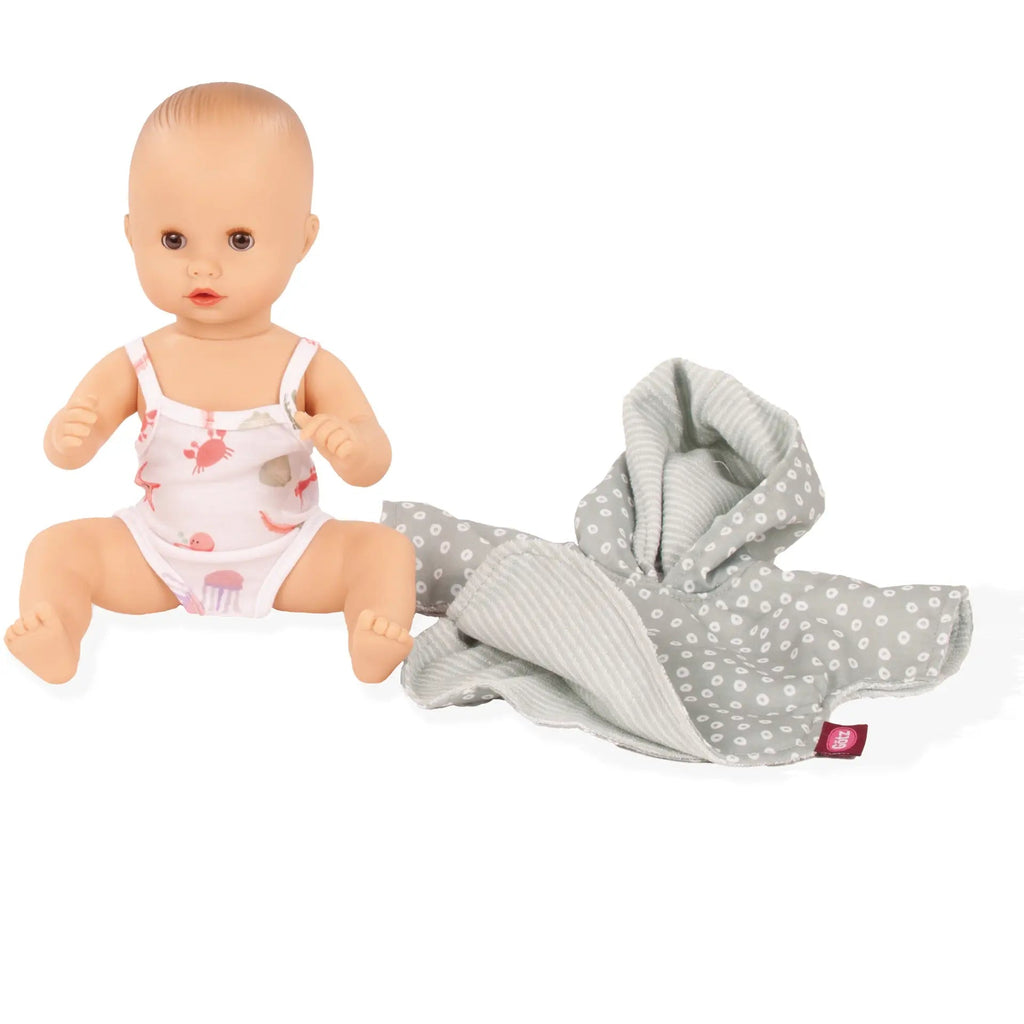 Contenu : cape de bain doublée en tissu éponge et maillot de bain pour poupée