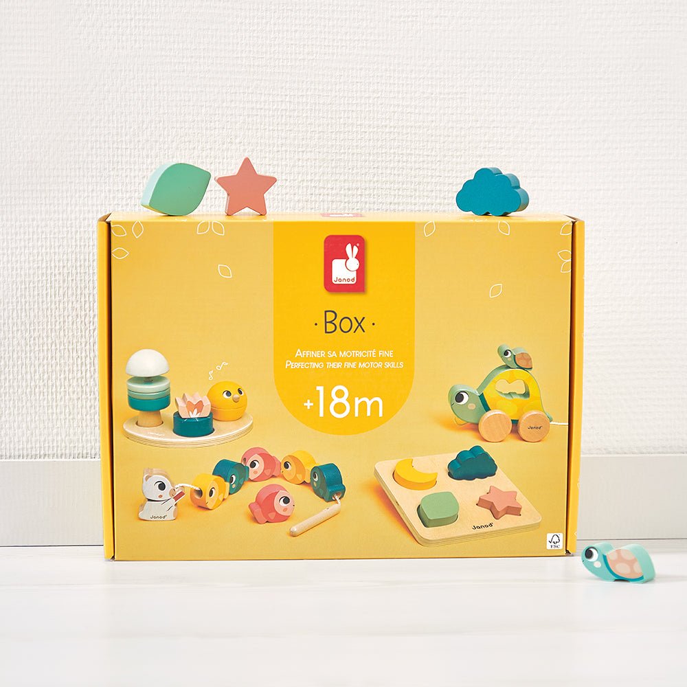 Ce coffret Janod pour les enfants de 18 mois est une sélection de jouets conçus en collaboration avec une psychomotricienne pour favoriser l'éveil corporel et sensoriel des tout-petits. En d'autres termes, la réponse à la question cruciale : « Quel est le meilleur jouet pour un enfant de 18 mois ? » Vous trouverez les meilleurs jouets pour les enfants de 18 mois dans ce coffret Janod.