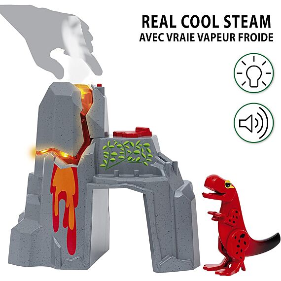 • Comprend un volcan qui peut entrer en éruption et des figurines de dinosaures