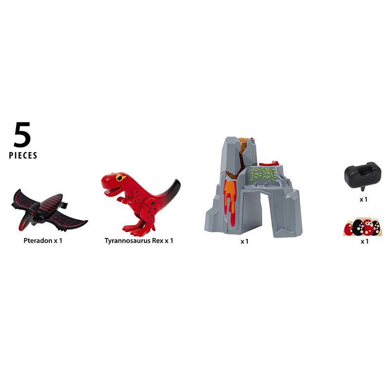 Ce coffret comprend un impressionnant T-Rex, un ptéranodon volant, des œufs de dinosaures et un volcan fonctionnel. Idéal pour compléter un coffret BRIO existant ou pour initier de nouvelles aventures dans le monde des dinosaures.