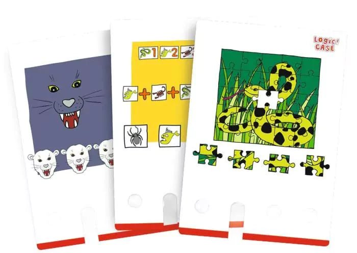 Vous n'avez toujours pas fini de vous creuser les méninges ? Avec cette extension du coffret de démarrage Logic! Case, découvrez 77 nouvelles énigmes sur le thème des animaux. Idéal pour les enfants de 7 ans et plus qui aiment les défis. Utilisez le plateau de jeu du coffret de démarrage de ce célèbre casse-tête et trouvez des énigmes astucieuses et amusantes mettant en scène des tigres, des crocodiles et d'autres animaux redoutables. Faites travailler vos méninges, placez l'épingle sur la réponse qui vous semble correcte, et si vous parvenez à retirer la carte, bravo ! Ces énigmes sont parfaites pour les enfants qui aiment les défis intellectuels !