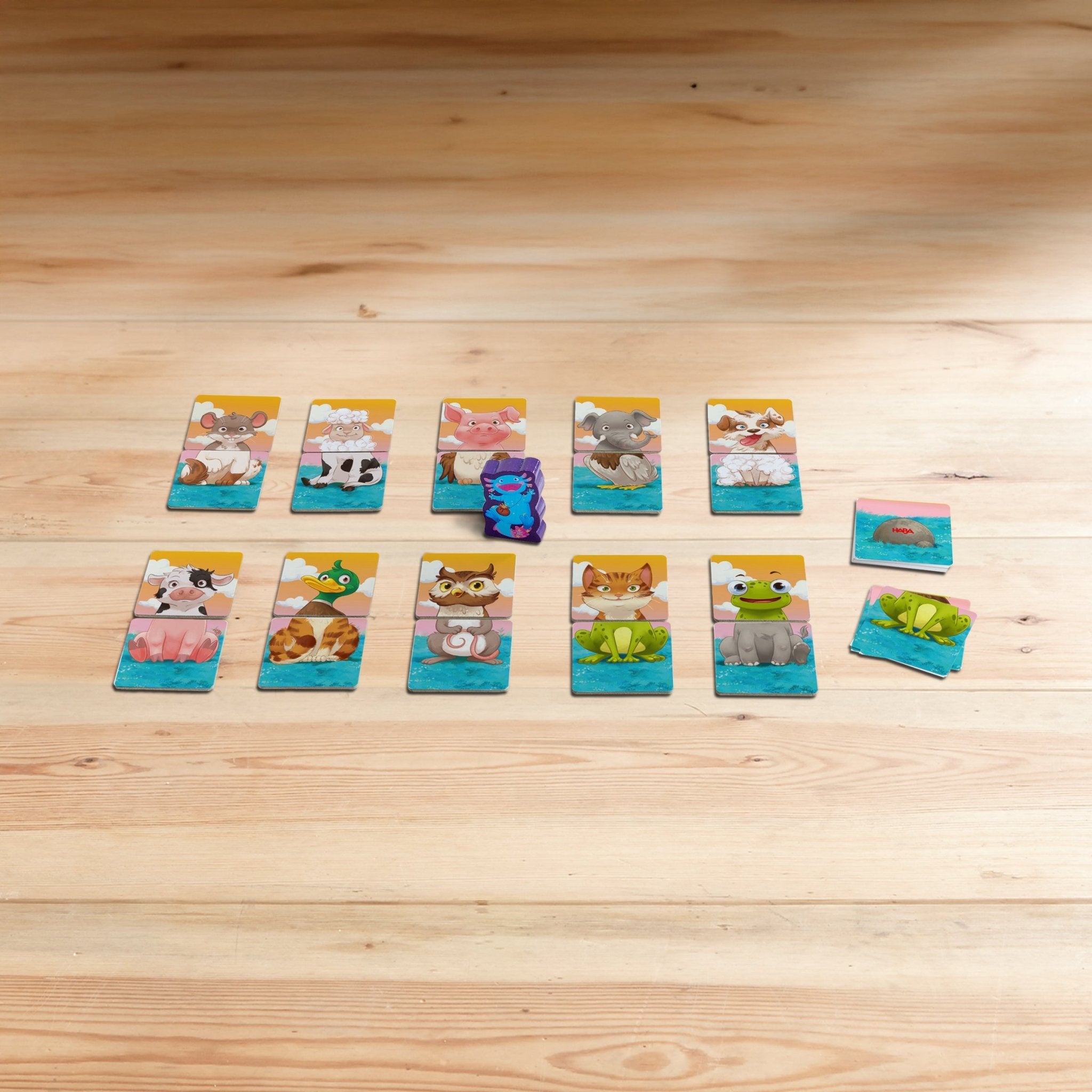 Dans ce jeu familial délirant, disposez des cartes sur la table, représentant le dessus et le dessous de toutes sortes d'animaux. Au lieu de les placer correctement, mélangez-les pour créer des créatures fantastiques, comme un chien-vache ou un mouton-éléphant. À chaque tour, piochez une carte et jouez simultanément. Si vous piochez une carte avec le dessous d'une grenouille, trouvez rapidement le dessous et imitez le cri de l'animal représenté dessus. Concentration et rapidité sont donc essentielles pour remporter la victoire. Bref, un jeu familial chaotique qui demande une attention soutenue !