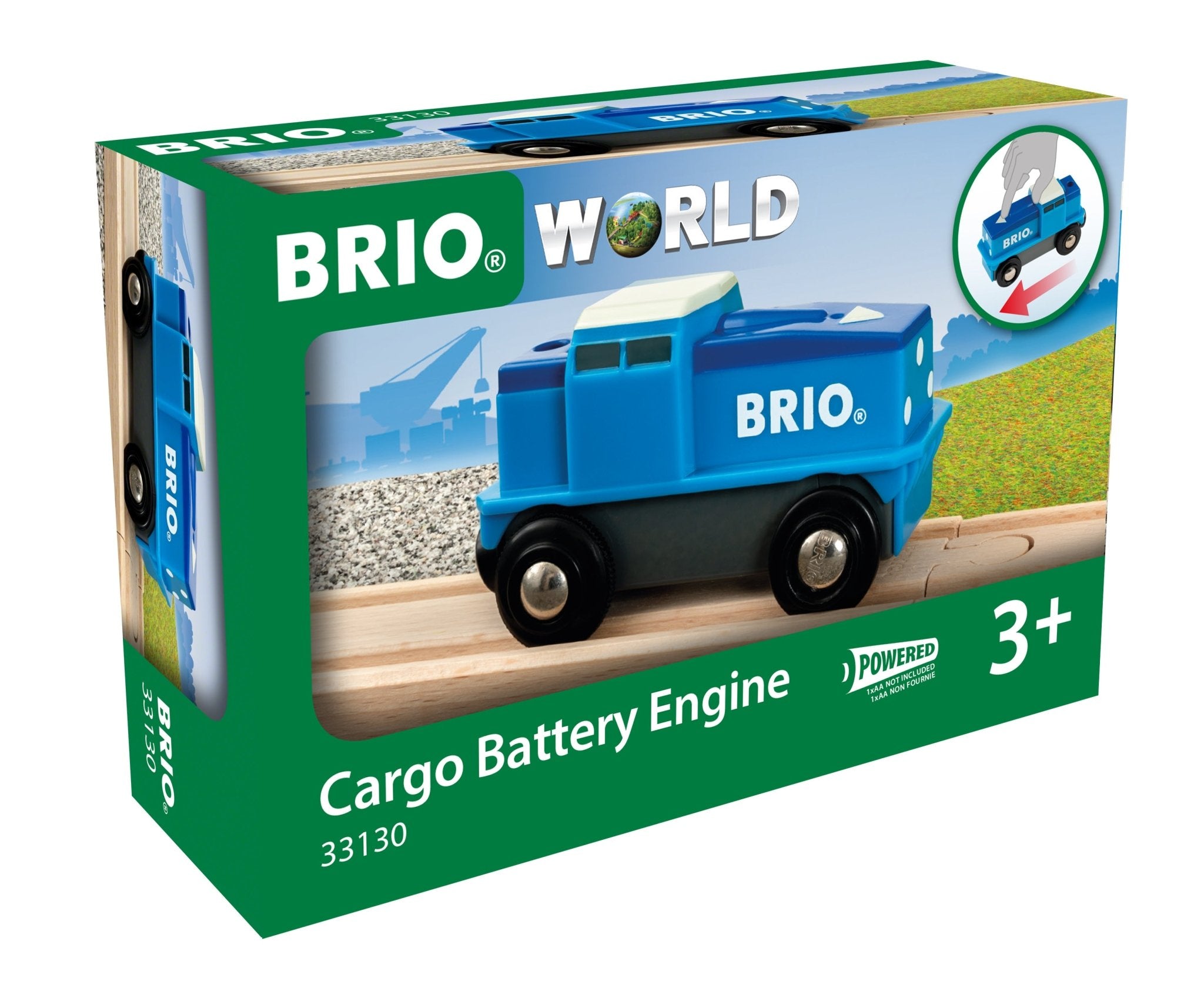 Allez ! Transportons la marchandise avec le train de marchandises à piles 33130. Ce train Brio est autopropulsé et spécialement conçu pour les tout-petits. La locomotive est très facile à utiliser : appuyez sur la flèche à l'avant pour démarrer le moteur, et appuyez à nouveau pour l'arrêter.