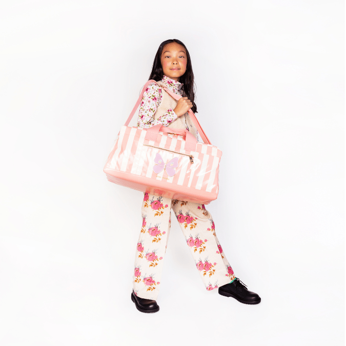 Voyagez léger et avec style grâce au nouveau sac week-end Caroline à rayures papillon de Jeune Premier. Ce sac week-end simplifie toutes vos sorties et se transforme en sac de sport idéal pour les pom-pom girls et les passionnés de hockey : élégant, spacieux et prêt pour votre prochaine aventure !
