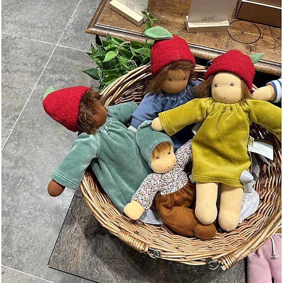 Pourquoi, chez In den Olifant, aimons-nous tant les poupées Nanchen ? Depuis 1983, les poupées Nanchen sont fabriquées et peintes artisanalement avec soin dans le nord de la Hesse, en Allemagne. Douces et confectionnées en laine et en matériaux naturels, elles sont non seulement sûres et délicates, mais elles absorbent également votre parfum, créant ainsi un sentiment de sécurité. De plus, ces poupées Waldorf sont de merveilleux jouets, résistants et parfaitement en accord avec la philosophie Montessori. Chaque poupée est une véritable œuvre d'art, et nous sommes ravis de les proposer dans notre boutique et sur notre site web.