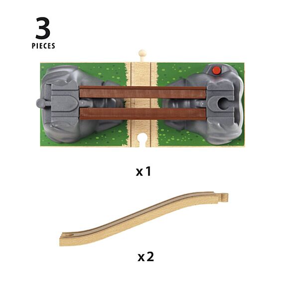 Donnez vie à votre circuit de train en bois avec le pont escamotable BRIO ! Ce formidable ensemble de jeu de 68 cm de long comprend un pont et deux voies inclinées. Une simple pression sur un bouton rouge suffit pour que le pont s'effondre et que les trains s'arrêtent net : idéal pour les enfants qui aiment les surprises et les jeux interactifs !