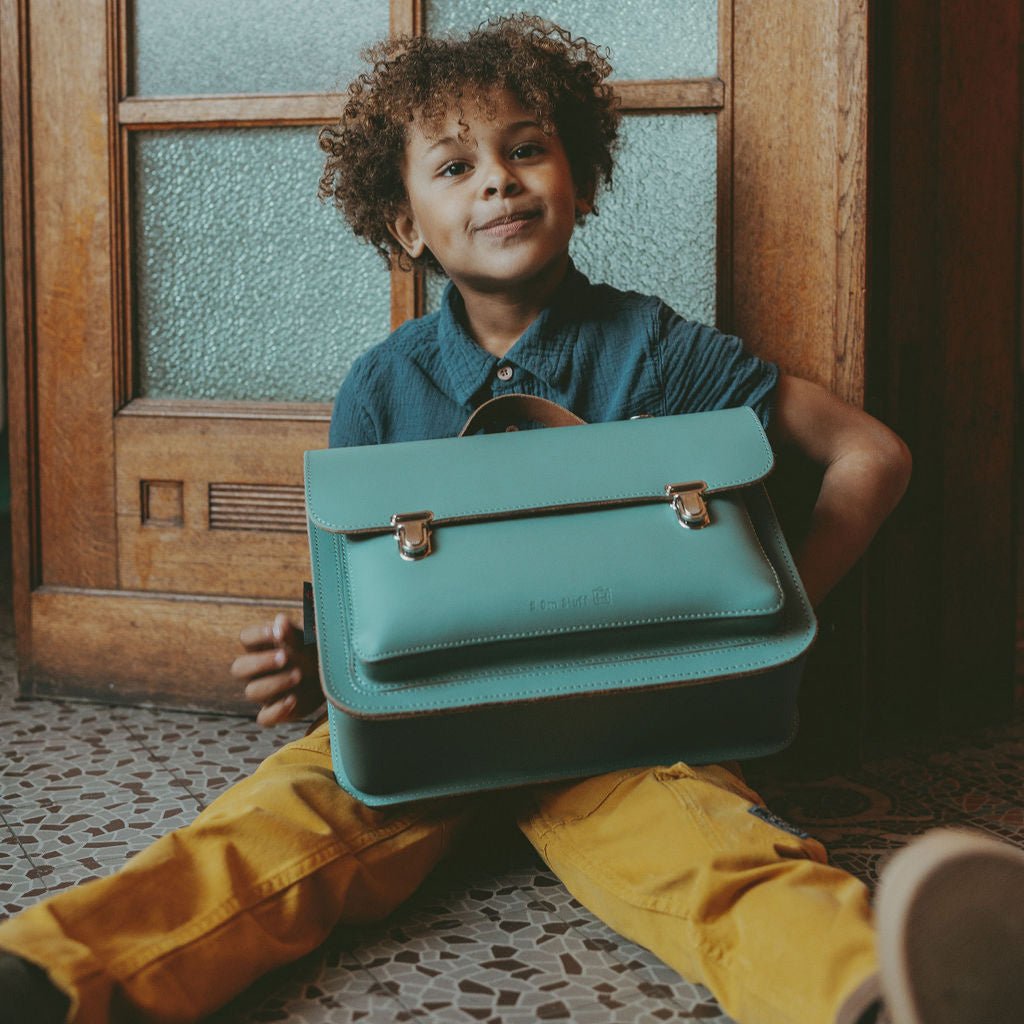 Si vous cherchez un premier cartable pour votre enfant et que vous appréciez la qualité et les belles matières, In den Olifant est la marque idéale. Ce cartable Classic Azul pour tout-petit possède un grand et un petit compartiment, des bretelles rembourrées et facilement réglables, et est confectionné en cuir véritable qui se patinera avec le temps. Il constitue la base de ce cartable vert tendance pour les petits bouts de chou. Sa forme classique et ses doubles fermoirs métalliques complètent son style. Sera-ce le premier cartable de votre enfant ?