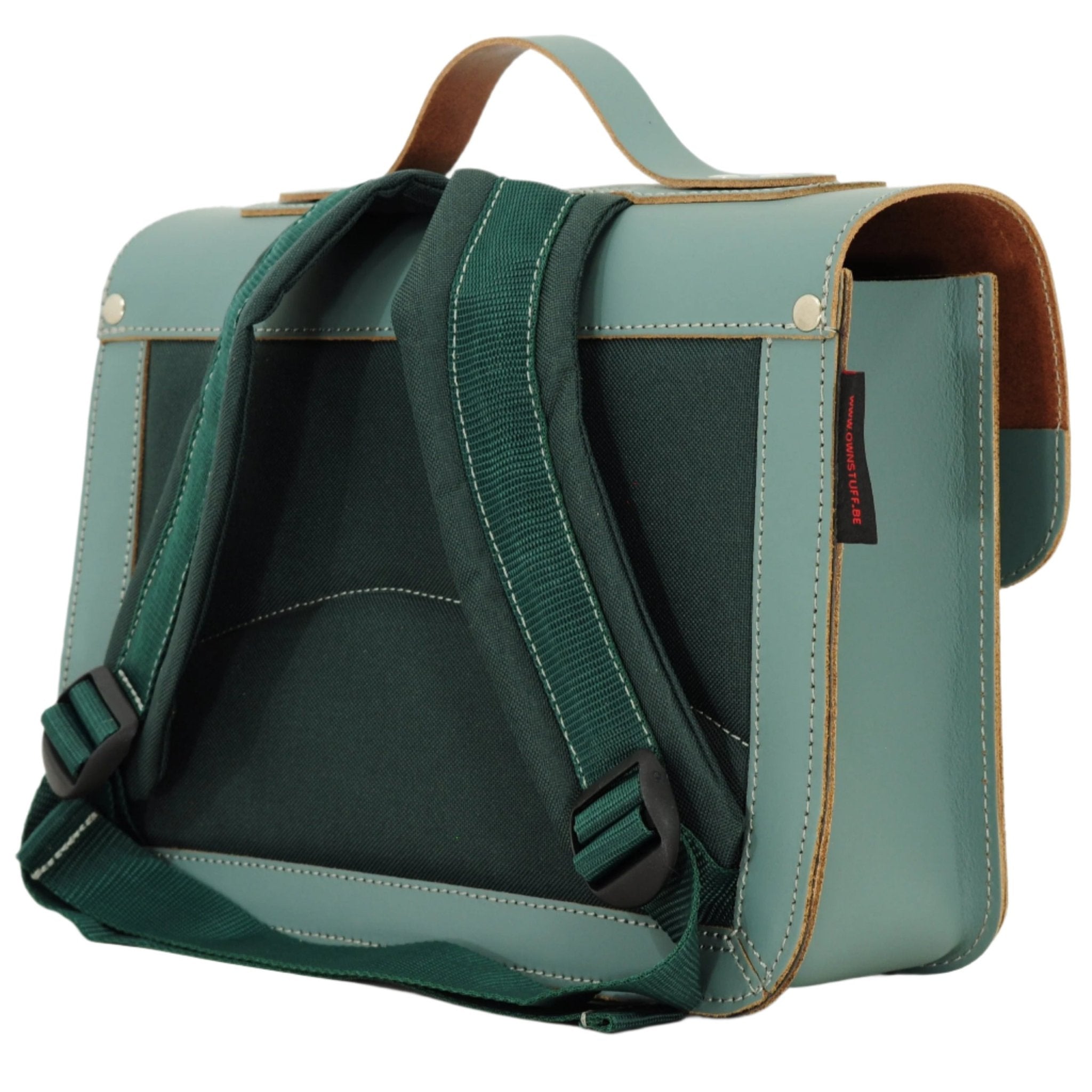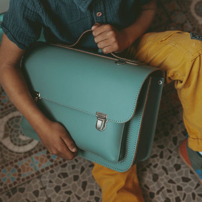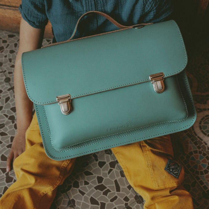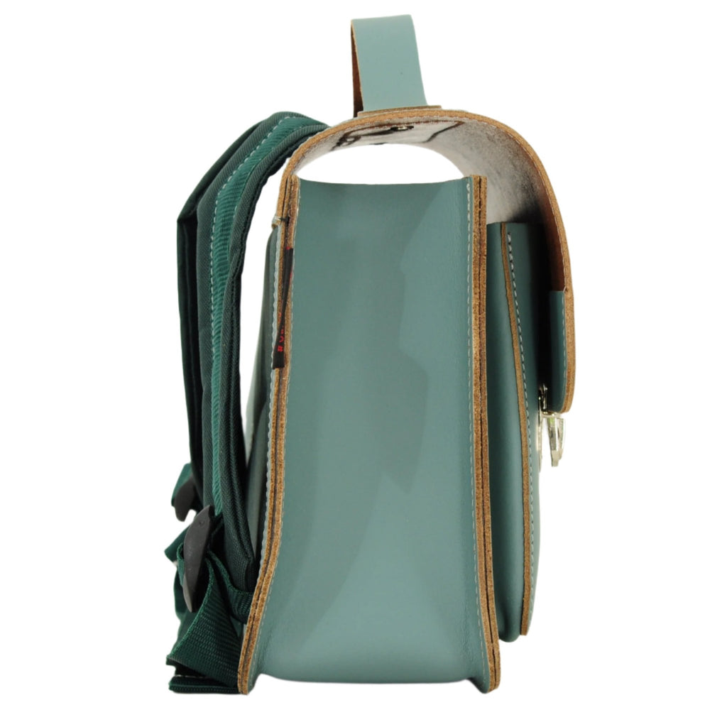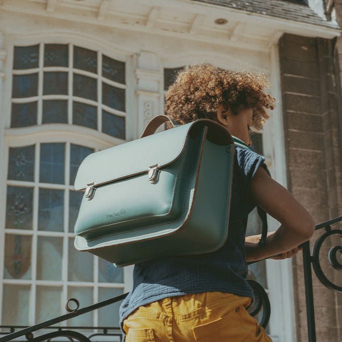 • Premier sac d'école en cuir vert au style classique