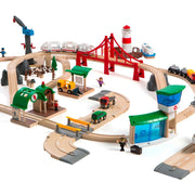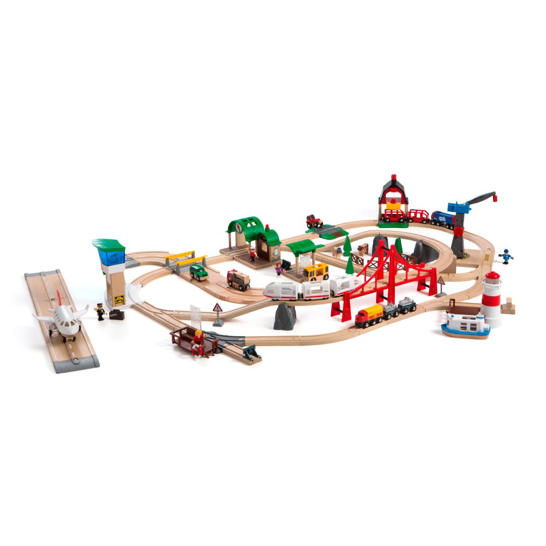 Découvrez l'aventure BRIO World ultime avec le coffret Deluxe Railroad World ! Un circuit ferroviaire gigantesque regorgeant d'activités, réunissant tout l'univers BRIO ! Retrouvez tous les éléments préférés de notre univers de jeu en bois dans un seul coffret ! Les thèmes classiques du chemin de fer et des trains incluent le port, l'aéroport, la gare parlante et la ferme. Effets sonores et lumineux inclus. Rejoignez-nous pour jouer ! Avec pas moins de 106 pièces, ce coffret offre aux enfants des possibilités de jeu infinies : trains, avions, bateaux, ponts, grues et bien plus encore. Les enfants peuvent contrôler les transports, soulever des marchandises avec la grue, s'occuper des animaux à la ferme ou accueillir les voyageurs à la gare avec des effets sonores et lumineux.