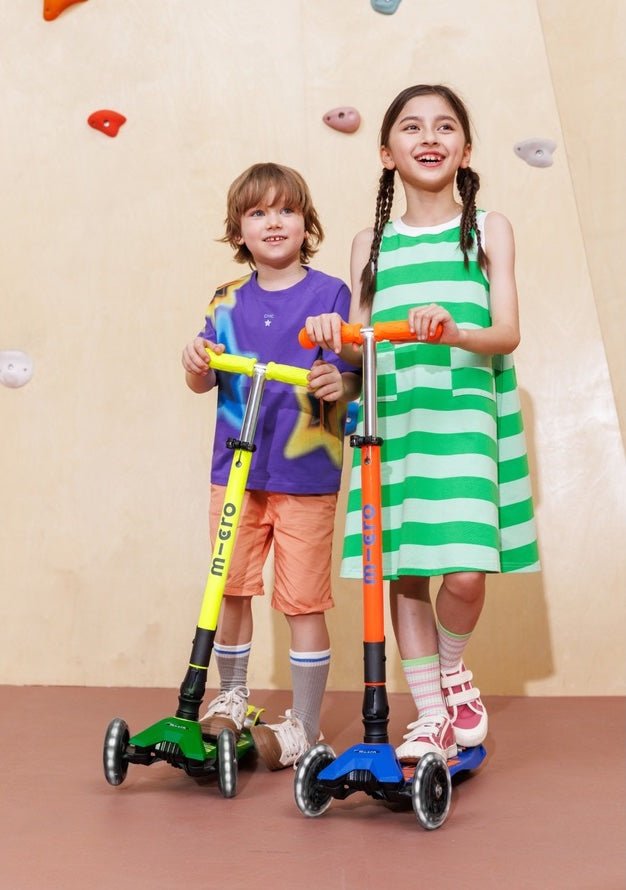 Step Maxi Micro foldable LED Blue Orange Neon - 5 tot 12 jaar - Steppen Micro Mobility - In den Olifant