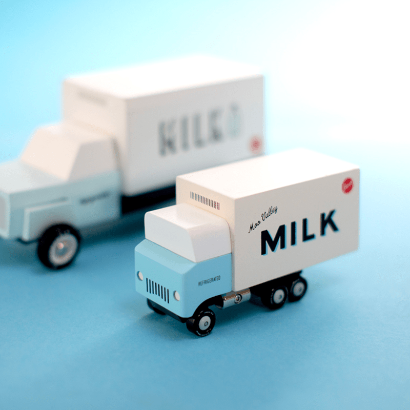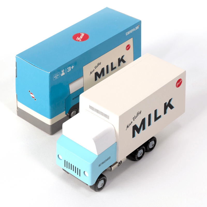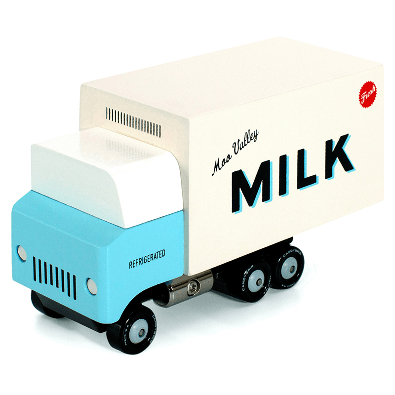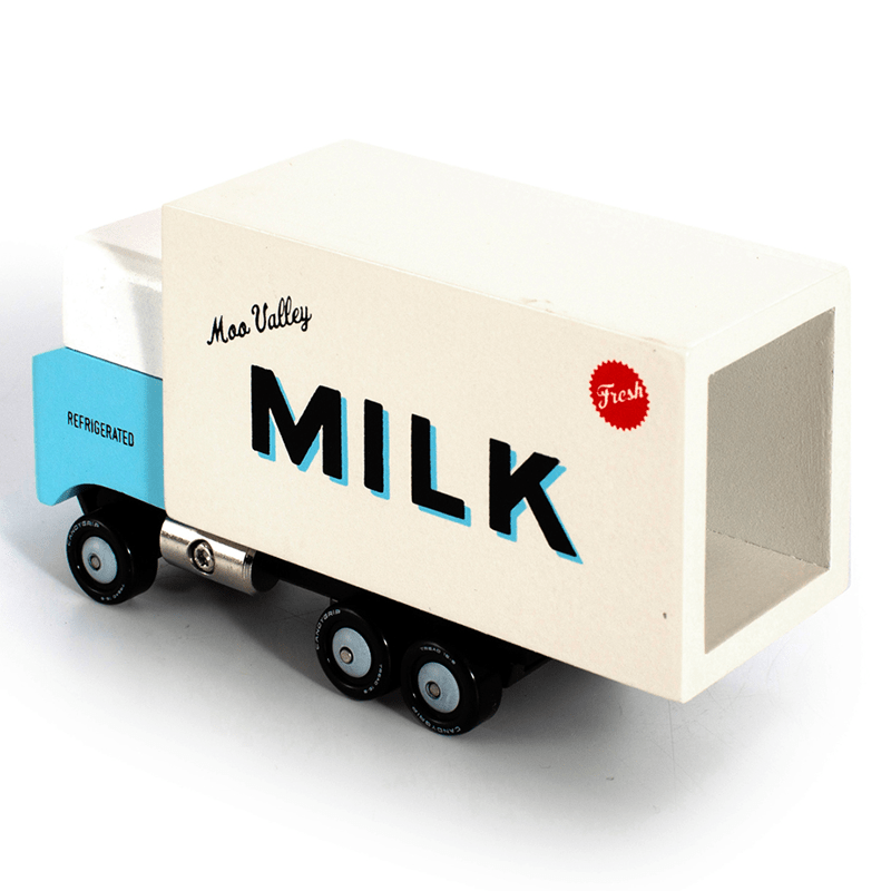 Milk Truck (T464) 13,5X4,8X7,6Cm, Wooden Diecast, In Giftbox, - Speelvoertuigen Candycar - In den Olifant