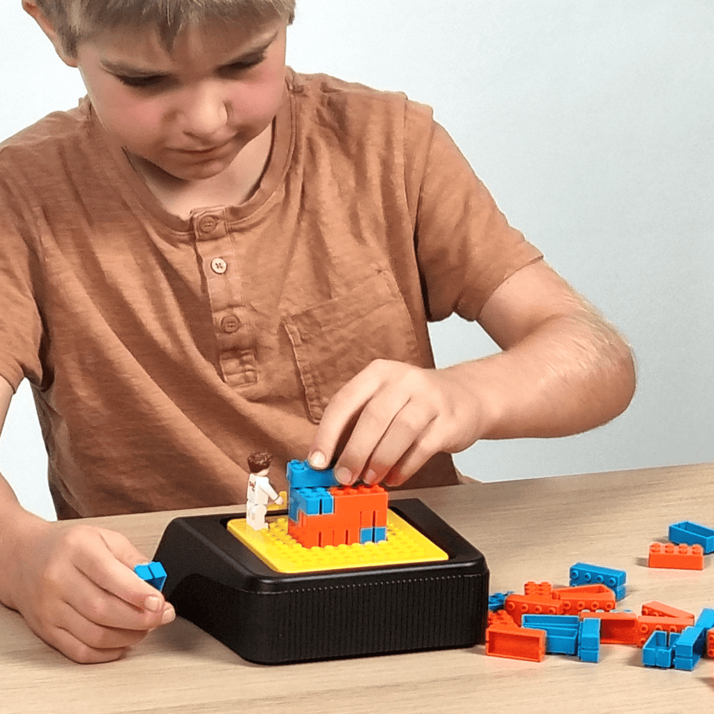 • Construisez vos propres maisons en briques et testez-les sur le simulateur de séismes : la plaque vibrante simule les forces d’un véritable tremblement de terre. Votre bâtiment résistera-t-il à la secousse ?
