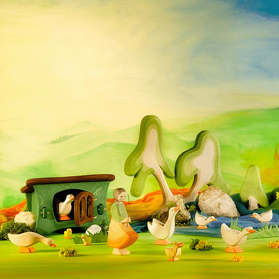 L'oie debout Ostheimer est un magnifique jouet en bois qui plonge chaque enfant dans un univers imaginaire. Complétez votre collection de figurines Ostheimer avec d'autres modèles. Ce jouet en bois intemporel s'inspire de la pédagogie Waldorf, qui privilégie les matériaux naturels de haute qualité et des jouets bien agencés pour stimuler la créativité et l'imagination.