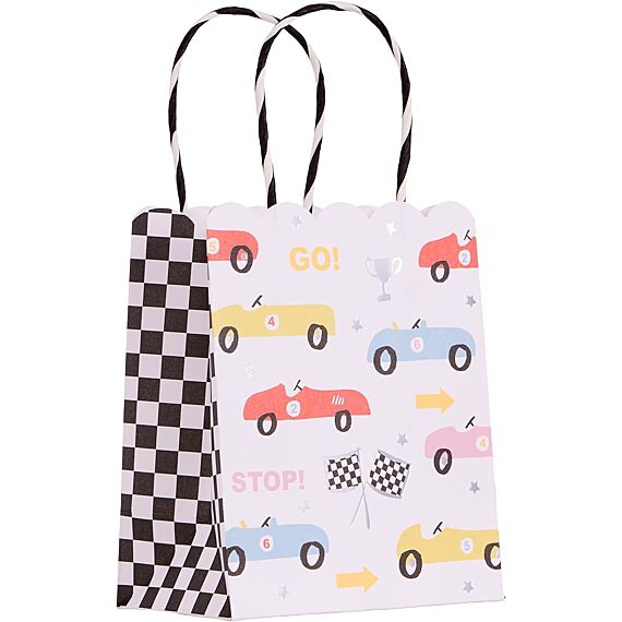 Sachets de fête en papier sur le thème des voitures de course - Lot de 8