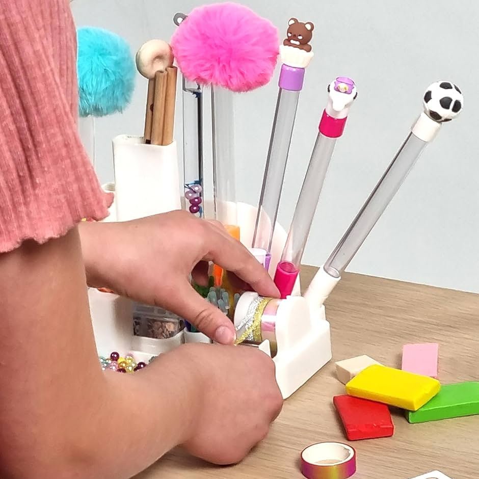 • Placez un stylo dans la station, insérez l'entonnoir et remplissez-le avec les décorations de votre choix.