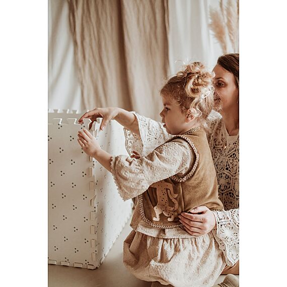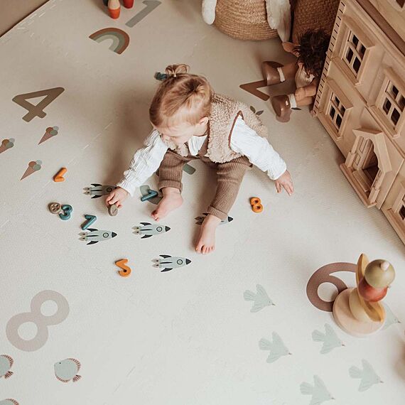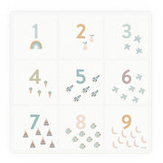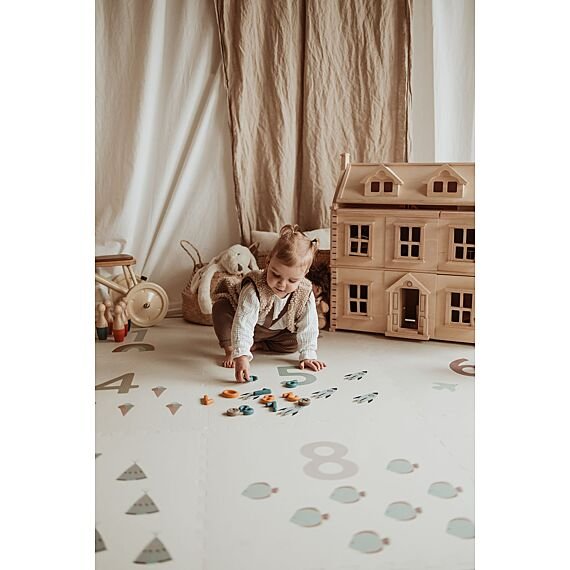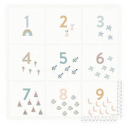 D'un côté de ce tapis puzzle carré, vous découvrirez un magnifique motif de chiffres et d'icônes pour apprendre à compter avec style ; de l'autre, de délicats pois minimalistes. Idéal pour varier les plaisirs. Ce tapis design pour enfants apportera instantanément une touche d'élégance à votre salon, salle de jeux ou chambre d'enfant.