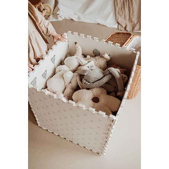 Une fois les aventures de la journée terminées, rangez soigneusement tous vos jouets dans une boîte de rangement fabriquée à partir de ces pièces de puzzle souples : le rangement sera un jeu d'enfant ! Et le plus excitant, c'est que le jeu ne s'arrête jamais ! Créez une mini-maisonnette, construisez un grand château ou installez votre propre marché miniature. Les possibilités sont infinies, à la mesure de votre imagination. Un jouet fantastique !