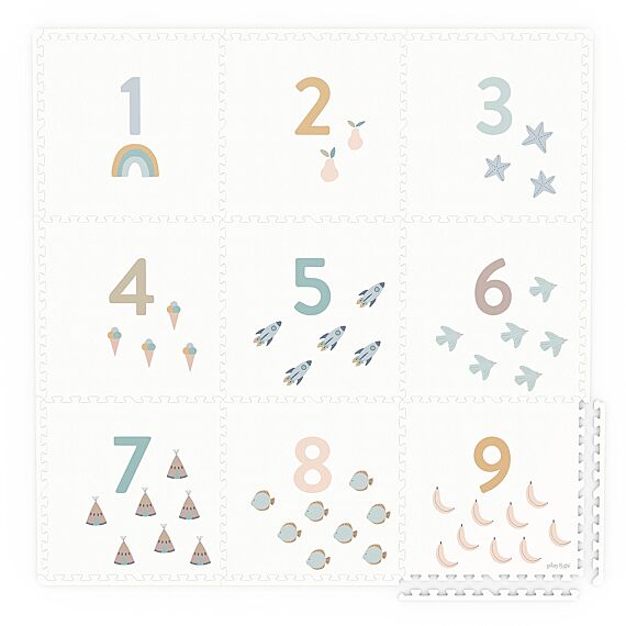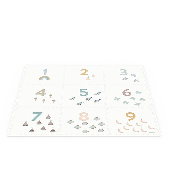 Le tapis puzzle Play & Go EVA « Chiffres » est un tapis de jeu réversible qui fait également office de maisonnette et de coffre à jouets. Idéal pour les bébés et les tout-petits, il permet aussi aux plus grands de construire. Ce tapis d'éveil, composé de 9 pièces carrées, est si joli qu'il trouve aussi parfaitement sa place dans le salon.