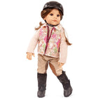 La poupée Hannah prend des cours d'équitation et est passionnée par ces magnifiques animaux et la sérénité qu'ils dégagent. Cette poupée aux longs cheveux bruns adore panser les chevaux, les nourrir et, bien sûr, les monter. Pour ses promenades, elle enfile une culotte de cheval, des chaps et des fers. Un gilet et une chemise à motifs floraux la tiennent bien au chaud, et le casque est indispensable, car la sécurité est primordiale. Un loisir vraiment merveilleux qui inspire tant de personnes. Le cheval n'est pas inclus, mais est disponible séparément dans notre collection Götz.