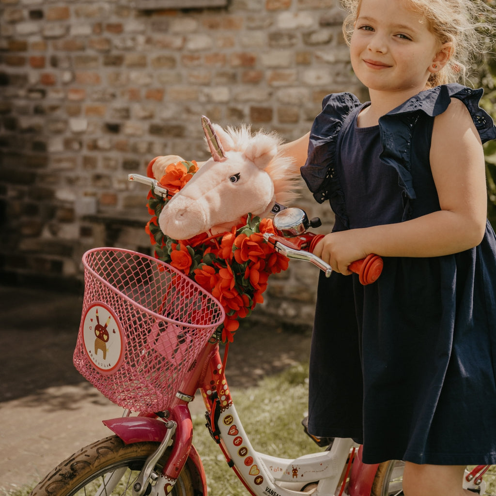 Transformez votre trottinette ou votre vélo en un véritable compagnon grâce à cette tête d'animal rose licorne à fixer sur votre guidon. Cette peluche licorne rose rendra chaque balade en trottinette ou à vélo encore plus magique.