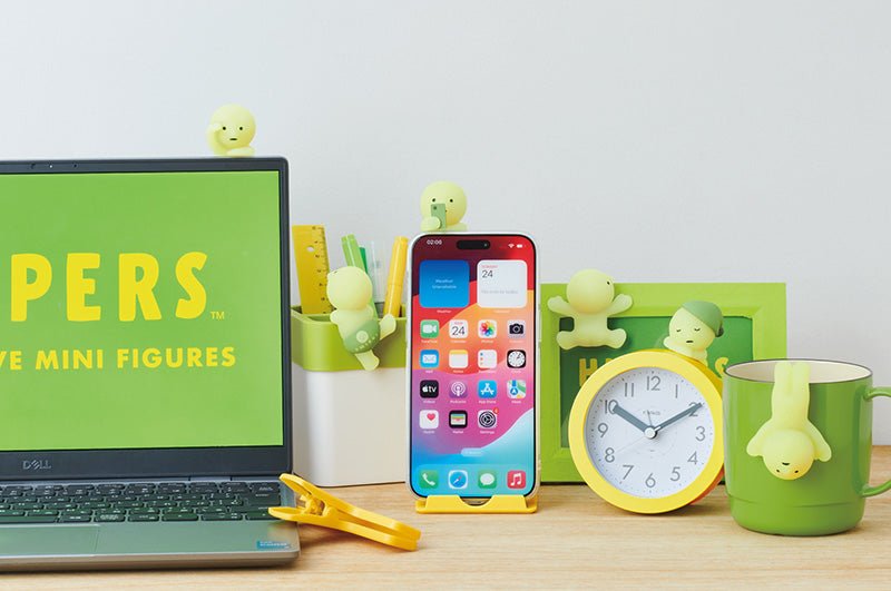 Smiski Hipper se fixe aux écrans d'ordinateur, aux smartphones et aux cadres photo. Au travail ou en déplacement, emportez votre SMISKI préféré partout avec vous !