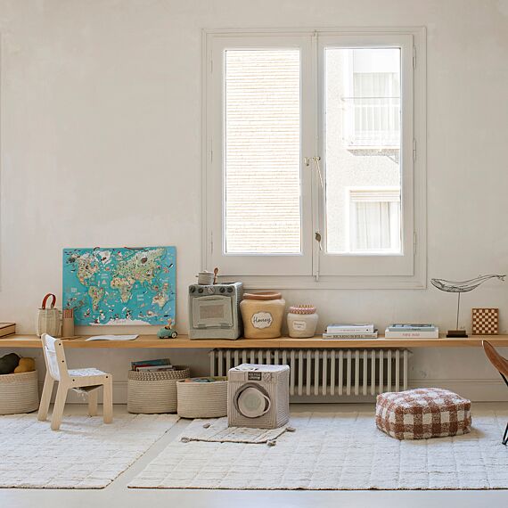 Mooie tapijten en kinderen in huis... het past wél samen dankzij Lorena Canals, opgericht in 1990. Dit Spaans decoratiemerk is gespecialiseerd in vloerkleden, poefs, kussens en speelse, woonaccessoires met bohemian vibes. Unieke wasbare stukken, handgemaakt, duurzaam en ethisch geproduceerd.