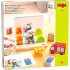 Au feu ! Au feu ! Déployez et installez rapidement ! Dans ce jeu d'empilage en bois de Haba, placez le pompier et les autres figurines sur la plaque de base et empilez-les de différentes manières. Empilez-les librement ou en suivant les instructions, avec différents niveaux de difficulté. Ouvrez le robinet et éteignez le feu !