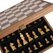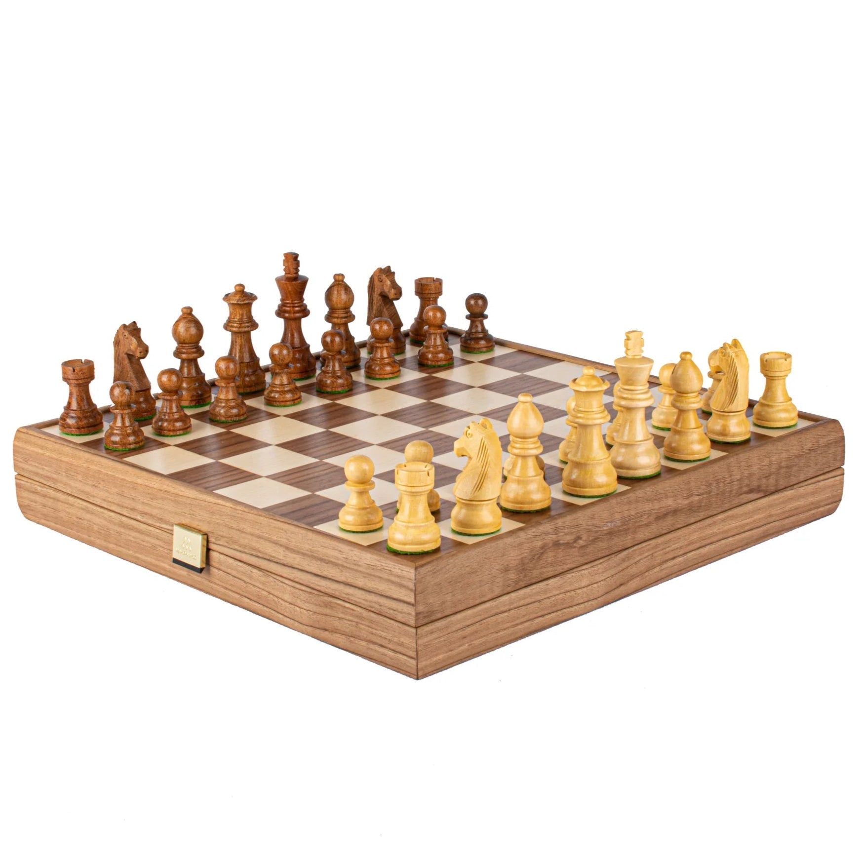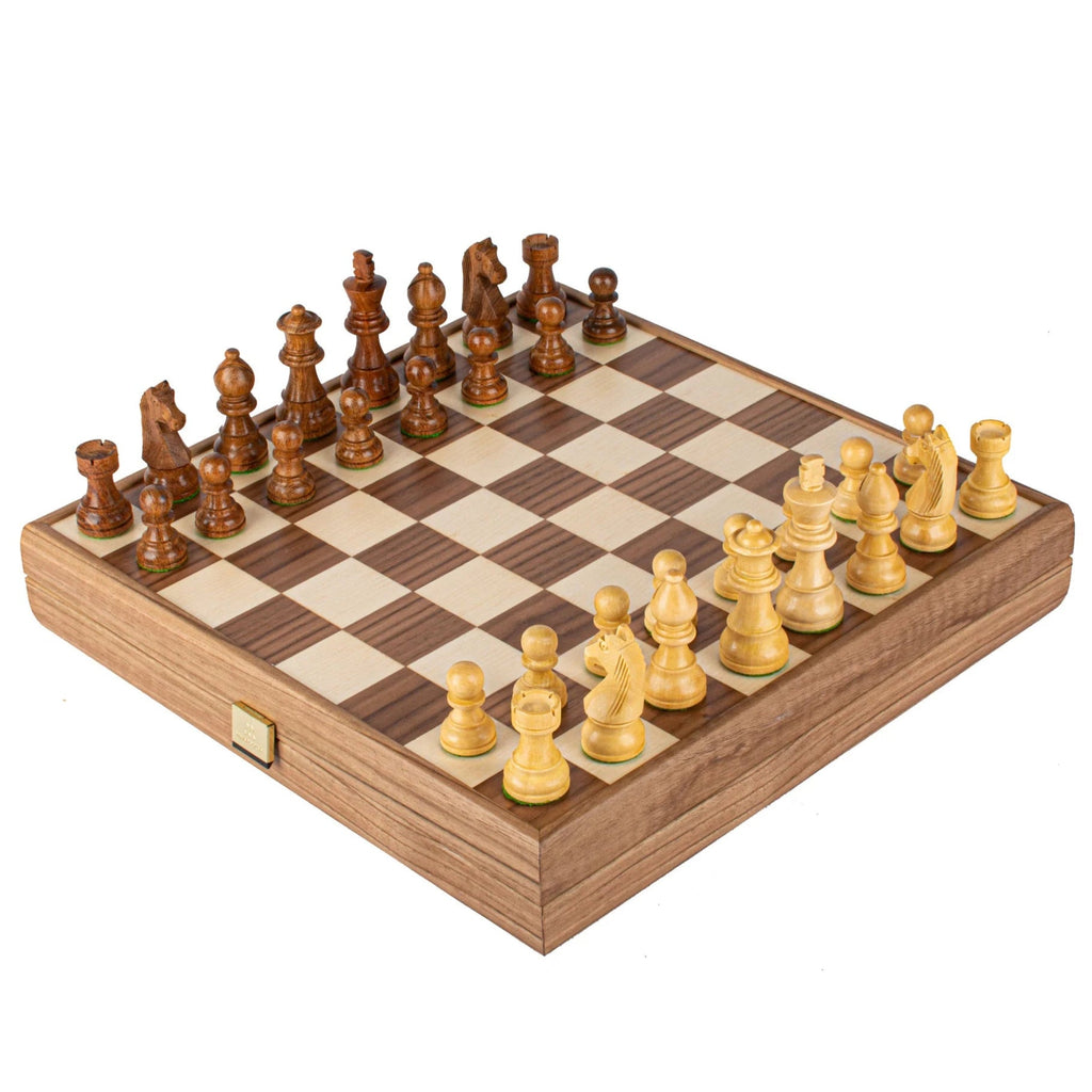 • Matériaux : Fabriqué à la main avec incrustations de chêne et de noyer, pièces d'échecs en bois de sheesham et de buis.