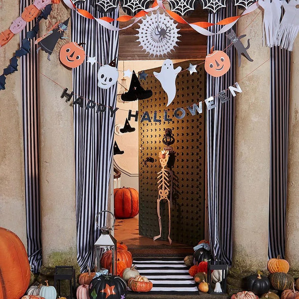 Alakazam! Geef je feesttafel een bangelijke make-over met onze zalige Halloween feestdeco van Meri Meri: Happy Halloween slingers, hangende skeletten of honeycombs pompoenen, niets is te gek voor dit prachtig feestmerk!