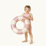 • Stevige zwemband met oudroze strepen